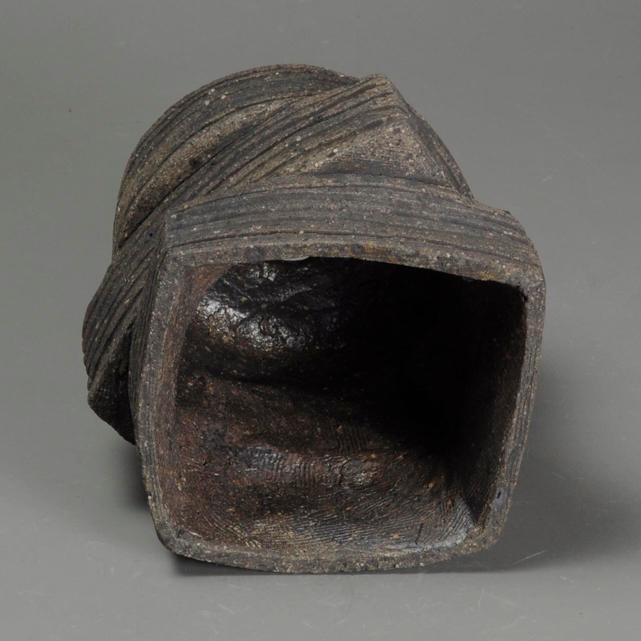 紐作りで成形して冷却還元焼成しています。