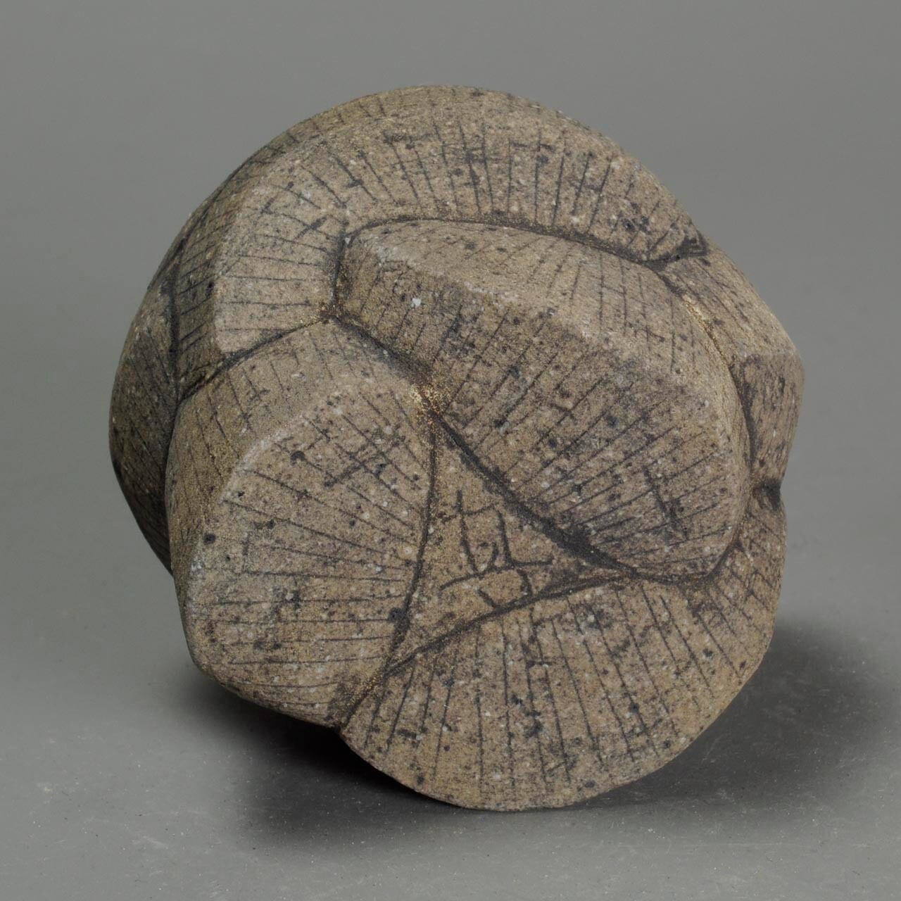 細い線は鉄分の多い土を象嵌していて、冷却還元焼成しています。