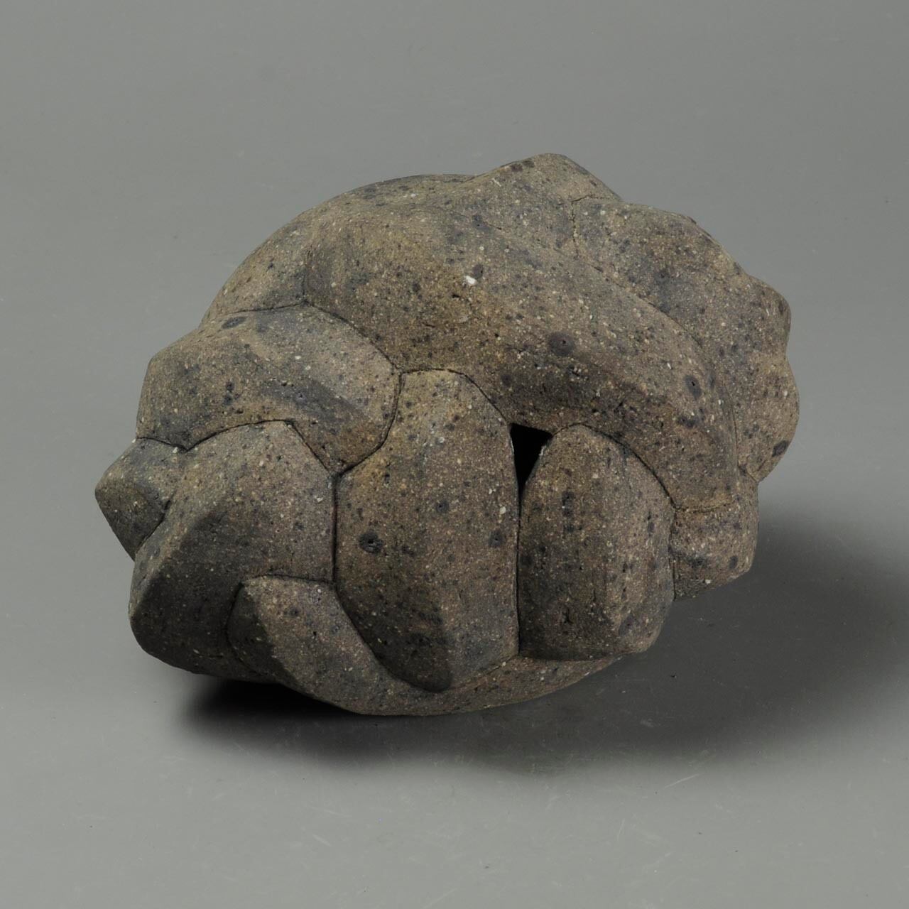 焼きしめの壷で、紐作りで作ってあります。冷却還元焼成です。