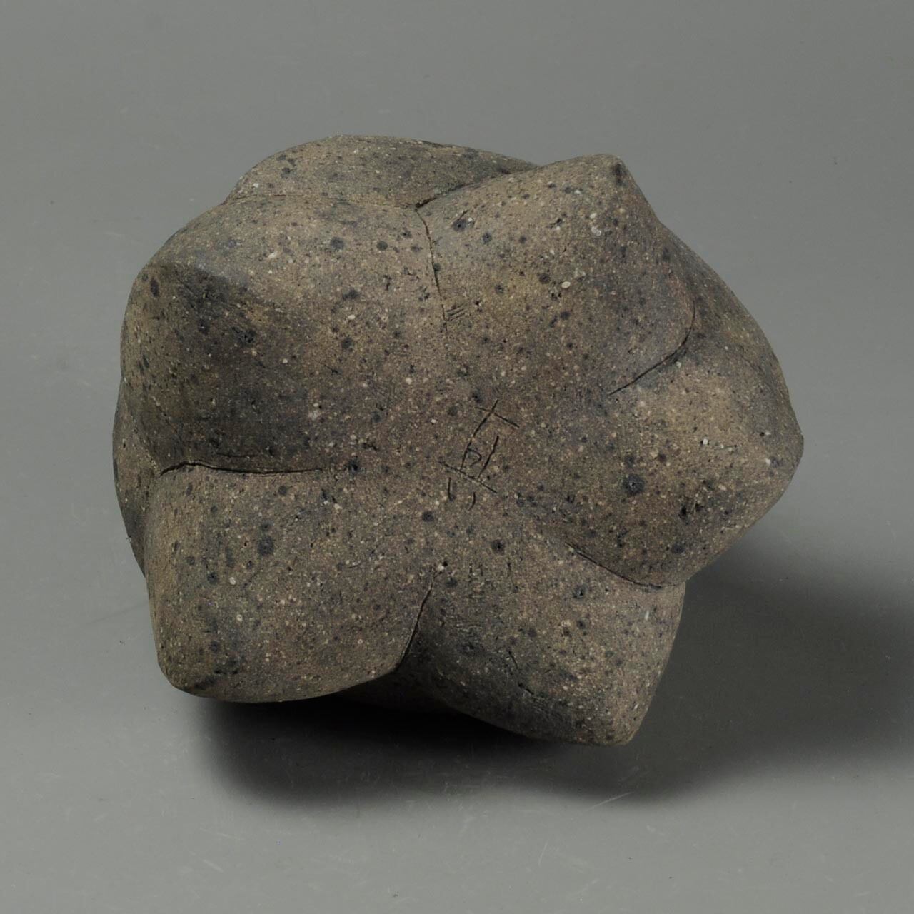焼きしめの壷で、紐作りで作ってあります。冷却還元焼成です。