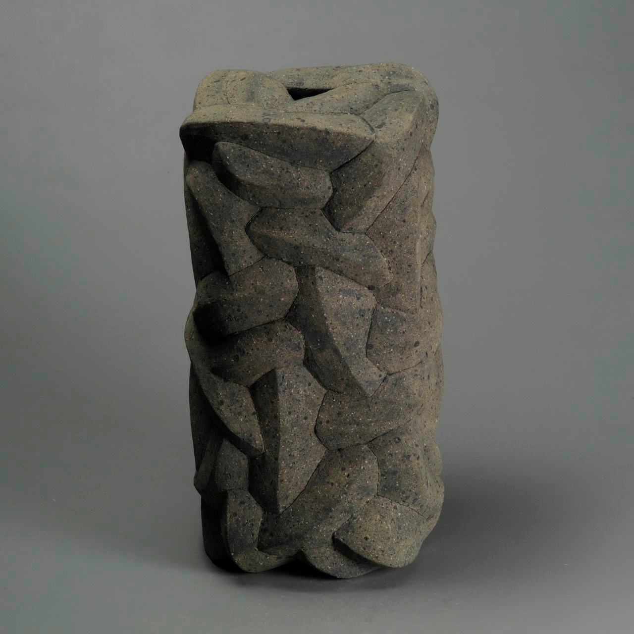 焼きしめの壷で、紐作りで作ってあります。冷却還元焼成です。