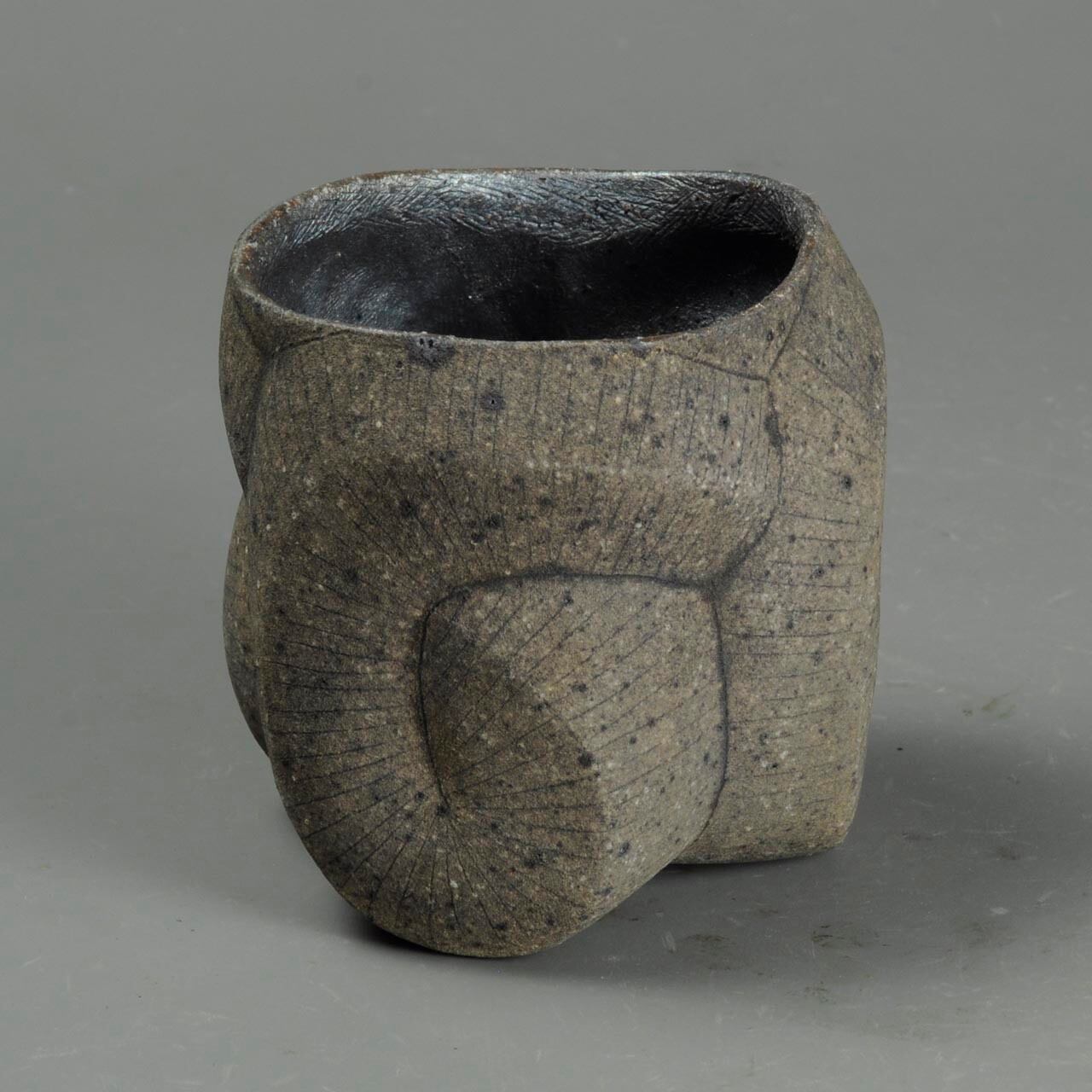 タタラ成形(石膏型に打ち込み)の焼きしめのカップです。