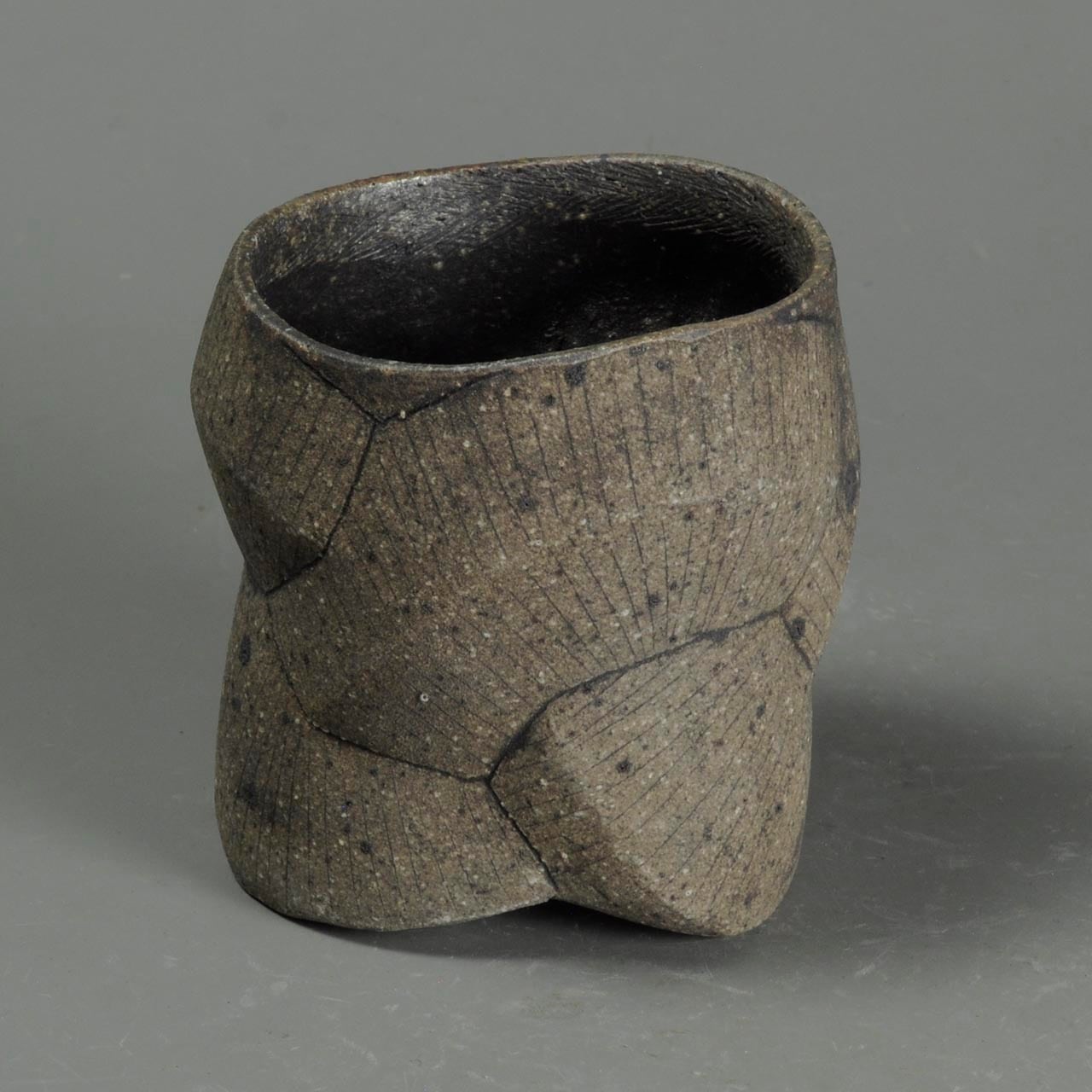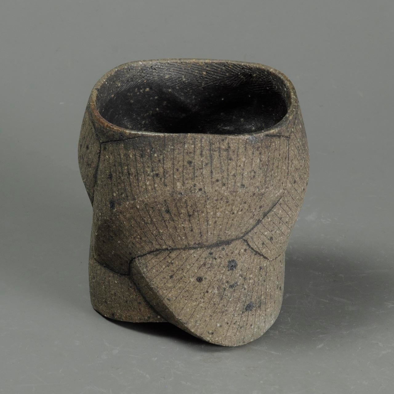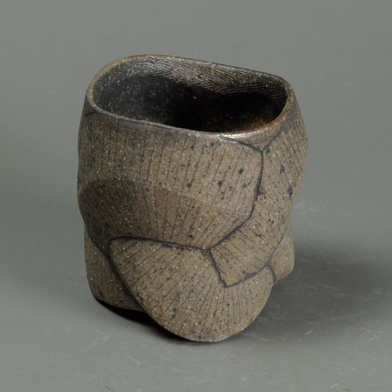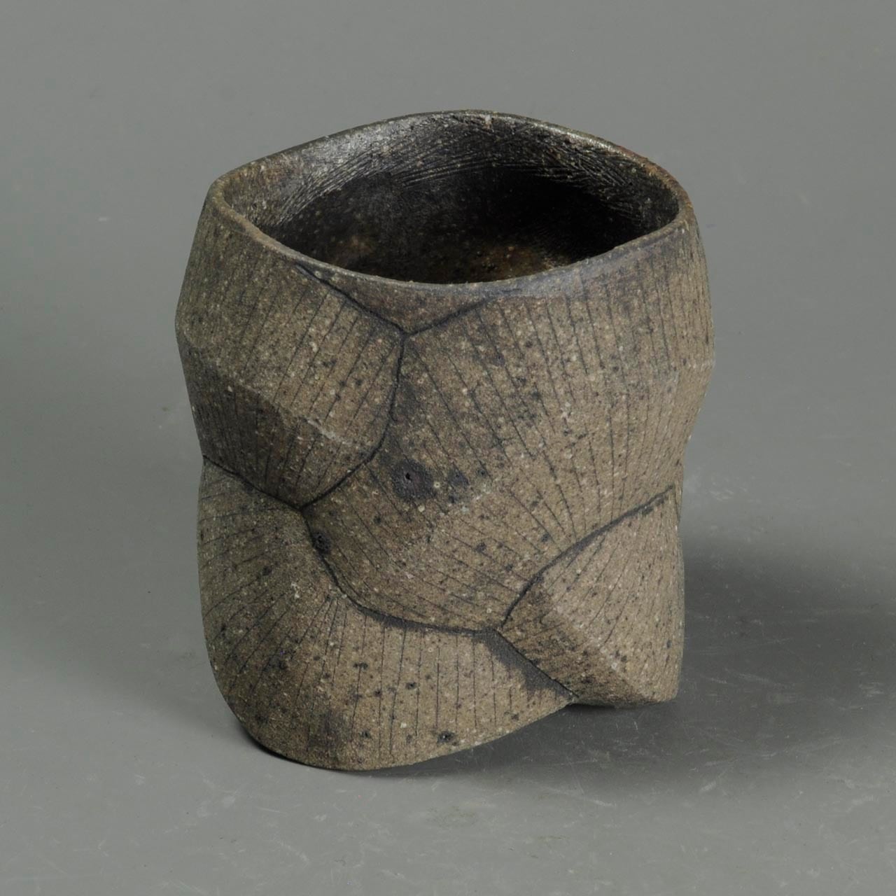 タタラ成形(石膏型に打ち込み)の焼きしめのカップです。