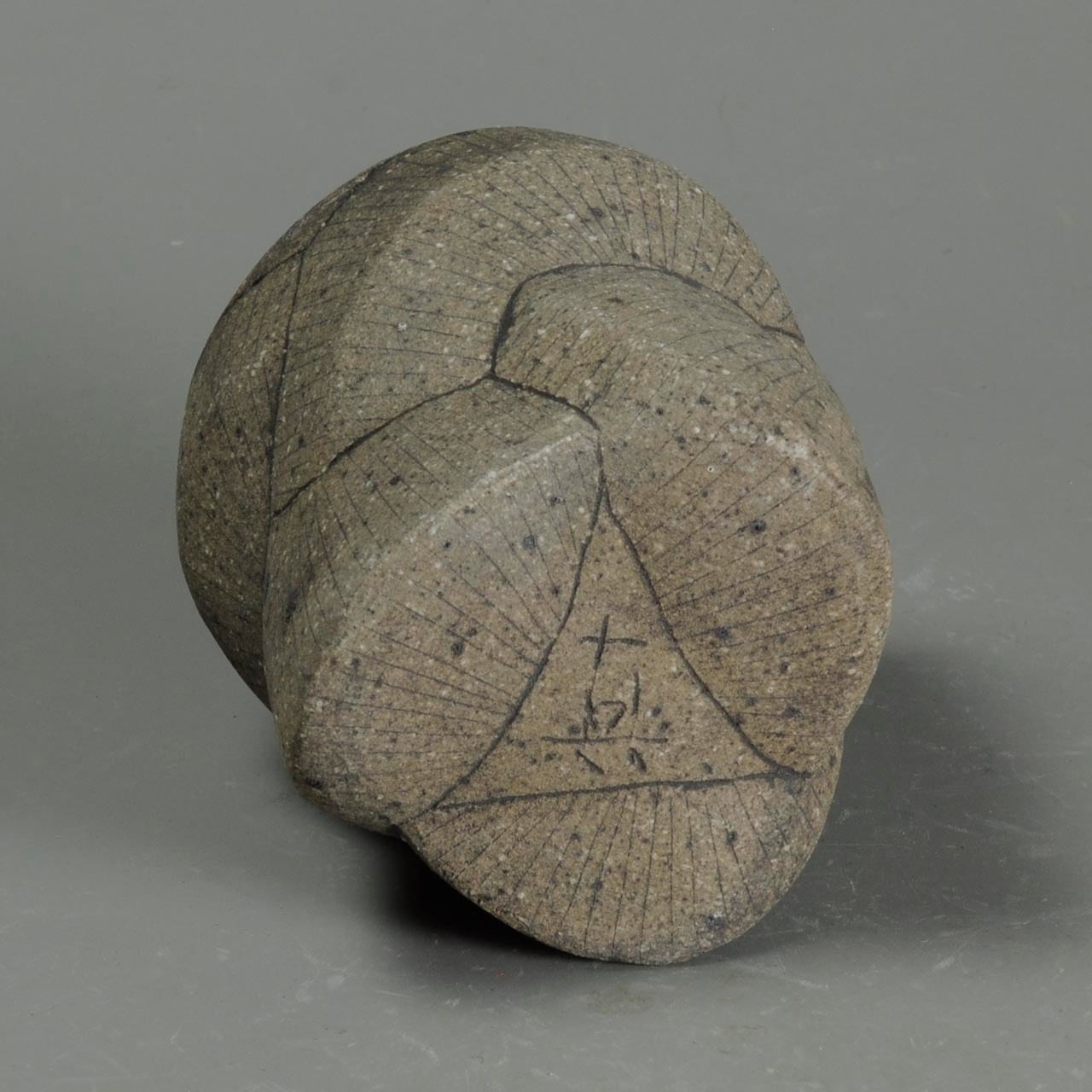 細い線は鉄分の多い土を象嵌していて、冷却還元焼成しています。
