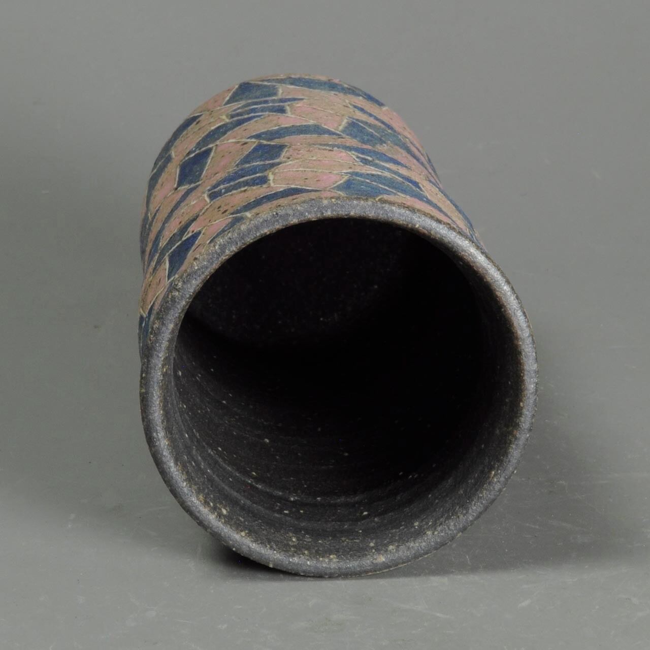 It is an inlaid, colored cup.